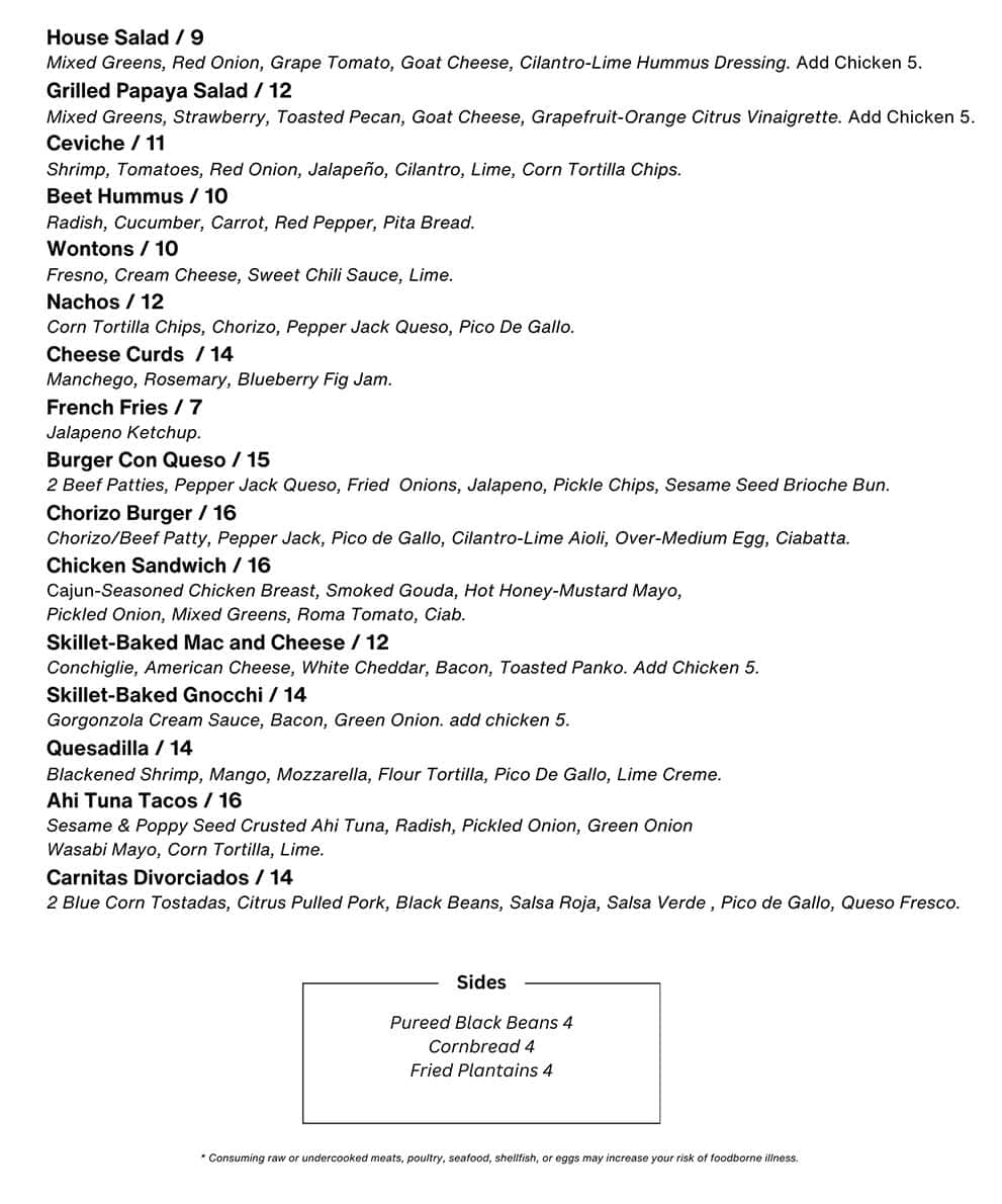 Evening Lounge Menu